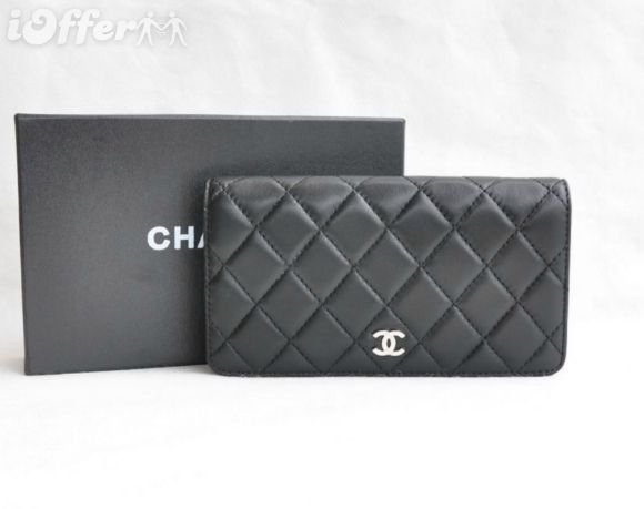 blackl Lambskin Two Folds Women's Long Wallet